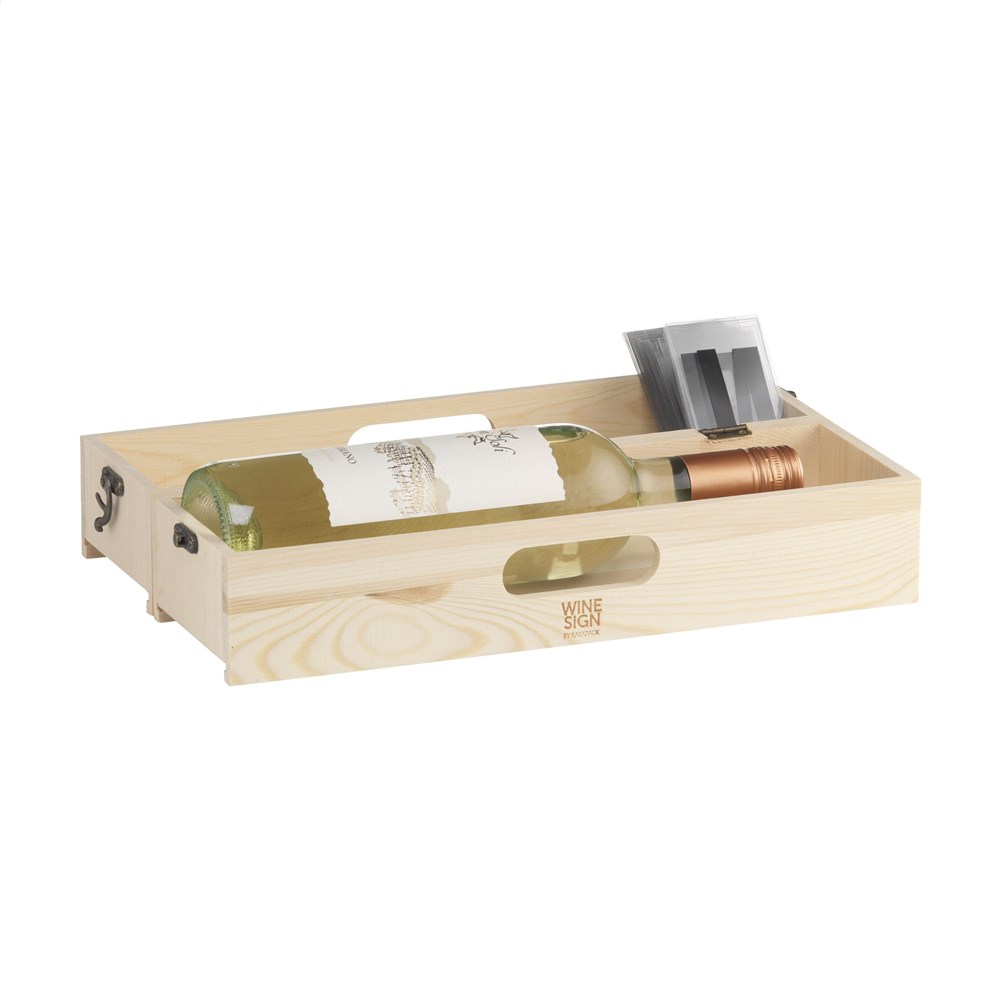 Say it with style! The Rackpack Wine Sign is a wooden wine box that doubles as a customizable message board, complete with 85 letters, numbers, and symbols for your own text. Made from FSC® 100% certified pine wood (8–10 mm thick), it fits one bottle of wine (not included) and comes neatly packaged for gifting or display.