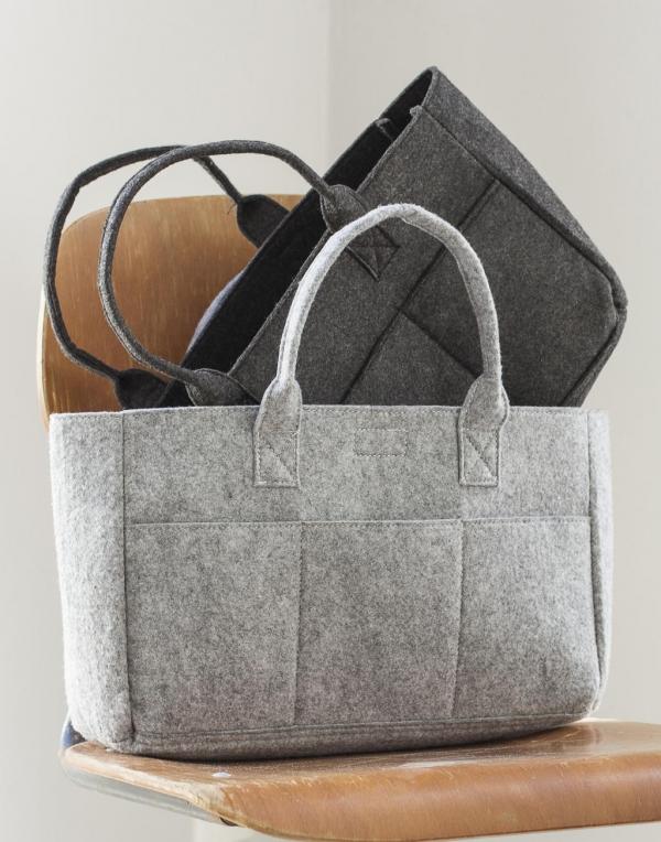Shopping bag from felt with three front pockets and short handles available in two colours