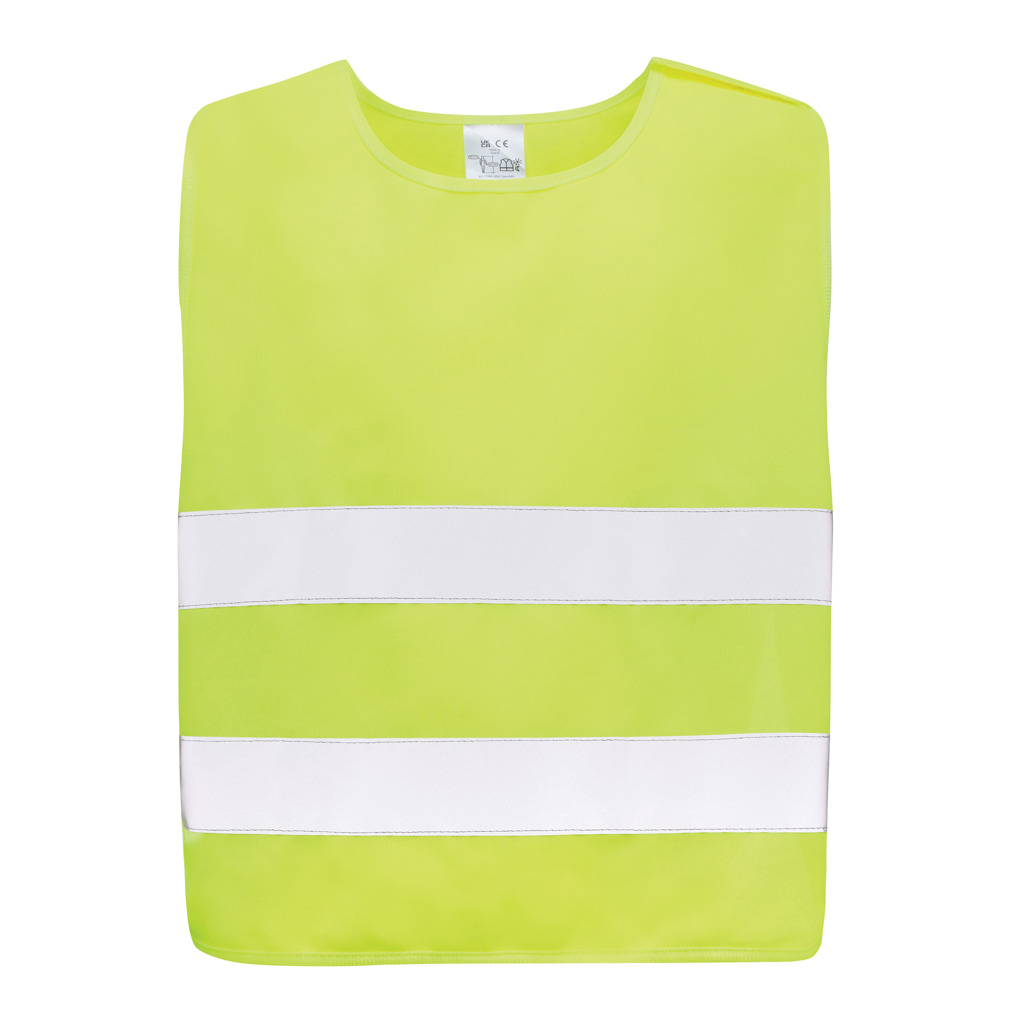 XS-sized high-visibility vest designed for children aged 7 to 12, suitable for those with a height ranging from 104 to 125 cm. This vest offers a generous surface area for decoration, both on the front and back. It is equipped with hook and loop closures on the shoulders and at the base, providing additional safety and facilitating effortless vest donning. The opposing elastic bands ensure stretchability, enabling comfortable wear even over bulky coats. This vest has undergone testing and complies with EN 17353:2020 Type AB3. Moreover, it adheres to the PPE guidelines outlined in Regulation (EU) 2016/425 for Personal Protective Equipment Category II. Made with GRS certified recycled PET. Total recycled content: 58% based on total item weight. GRS certification ensures a completely certified supply chain of the recycled materials.