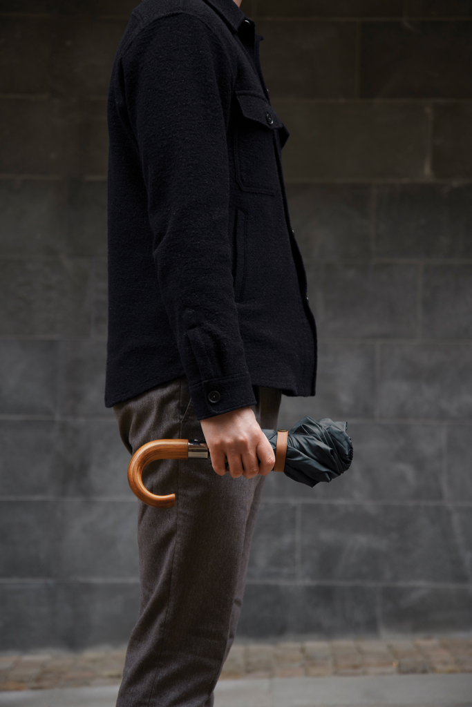 Dvoslojna 190T reciklirana tkanina zagotavlja izdatno zaščito pred dežjem, medtem ko čudovita notranja podloga dizajnu doda pridih elegance. Rebra in okvir so izdelana iz steklenih vlaken, ki zagotavljajo vzdržljivost in dolgo življenjsko dobo. Ročaj dežnika je izdelan iz kompozitnega lesa, kar dizajnu doda pridih prefinjenosti. Dežnik ima tudi samodejno odpiranje in možnost ročnega zapiranja. Torbica za shranjevanje iz ujemajoče se tkanine doda dodatno plast zaščite, ko ni v uporabi.