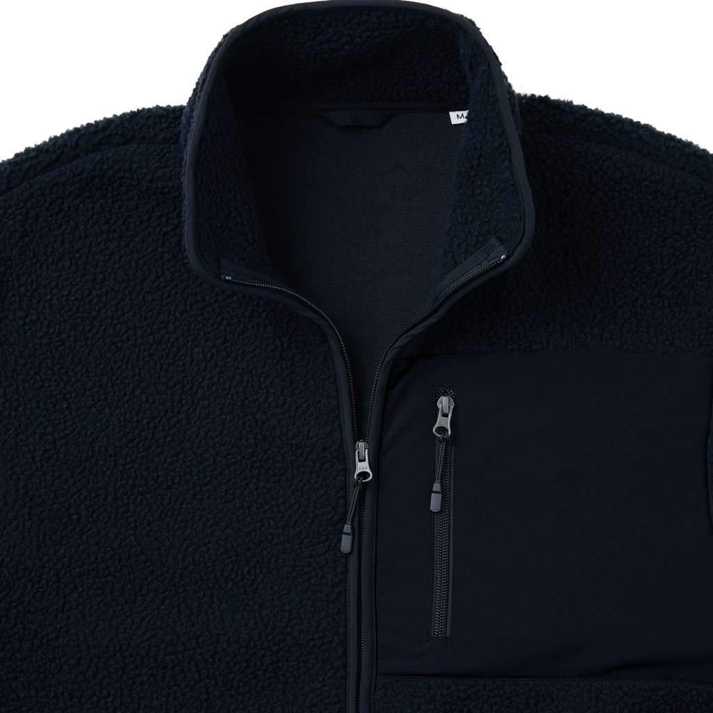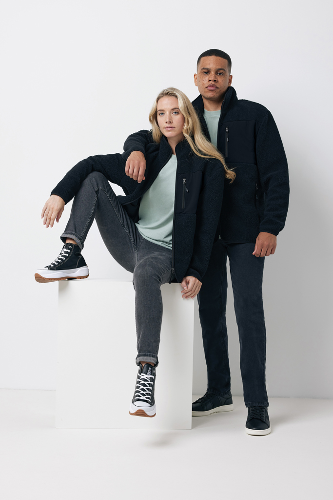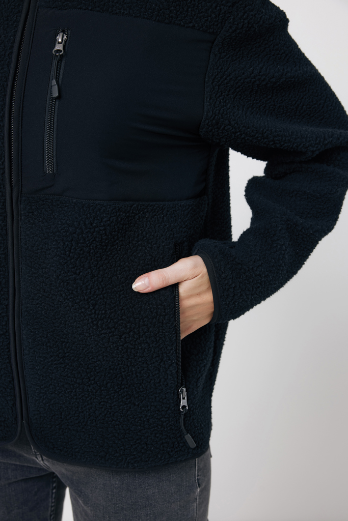 Stilska uniseks jakna iz flisa, izdelana iz 100% recikliranega poliestra. Elegantna z dodatnimi zaponkami za zadrgo. Okolju prijazna z AWARE™ sledilnikom in OEKO-TEX® certifikatom.